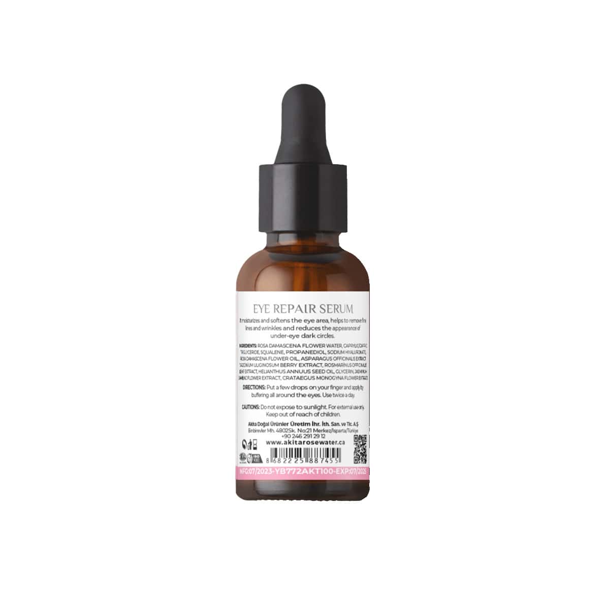 Akita Natural Eye Serum Rose is a luxurious, botanical-infused eye serum designed to rejuvenate and nourish the delicate skin around the eyes. This serum combines the essence of Rosa Damascena, known for its hydrating and soothing properties, with a blend of natural ingredients: