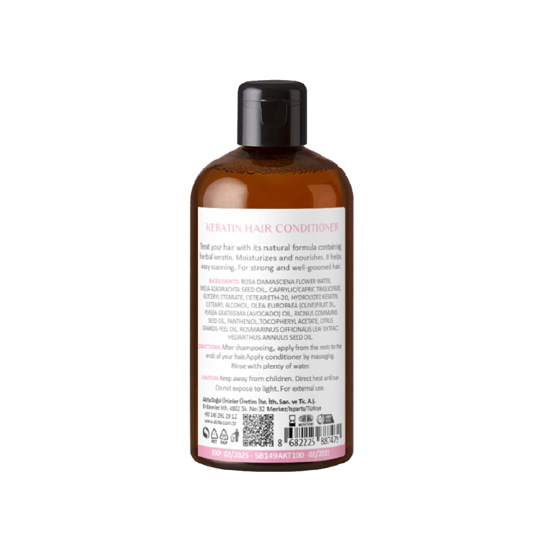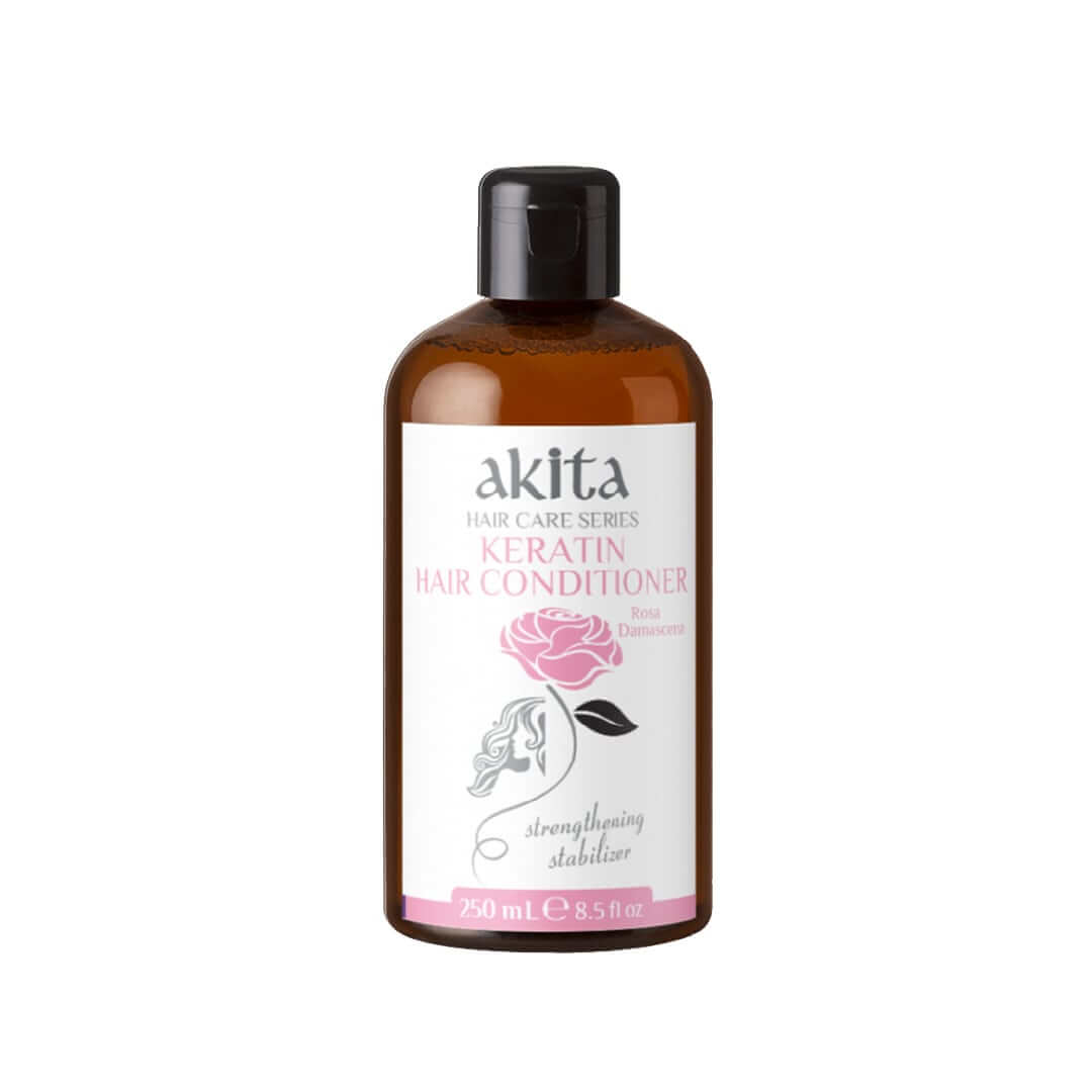 Apply Conditioner: Squeeze a generous amount of Akita All Natural Hair Conditioner Rose with Herbal Keratin into your palm. Distribute evenly throughout your hair, focusing on the mid-lengths and ends.